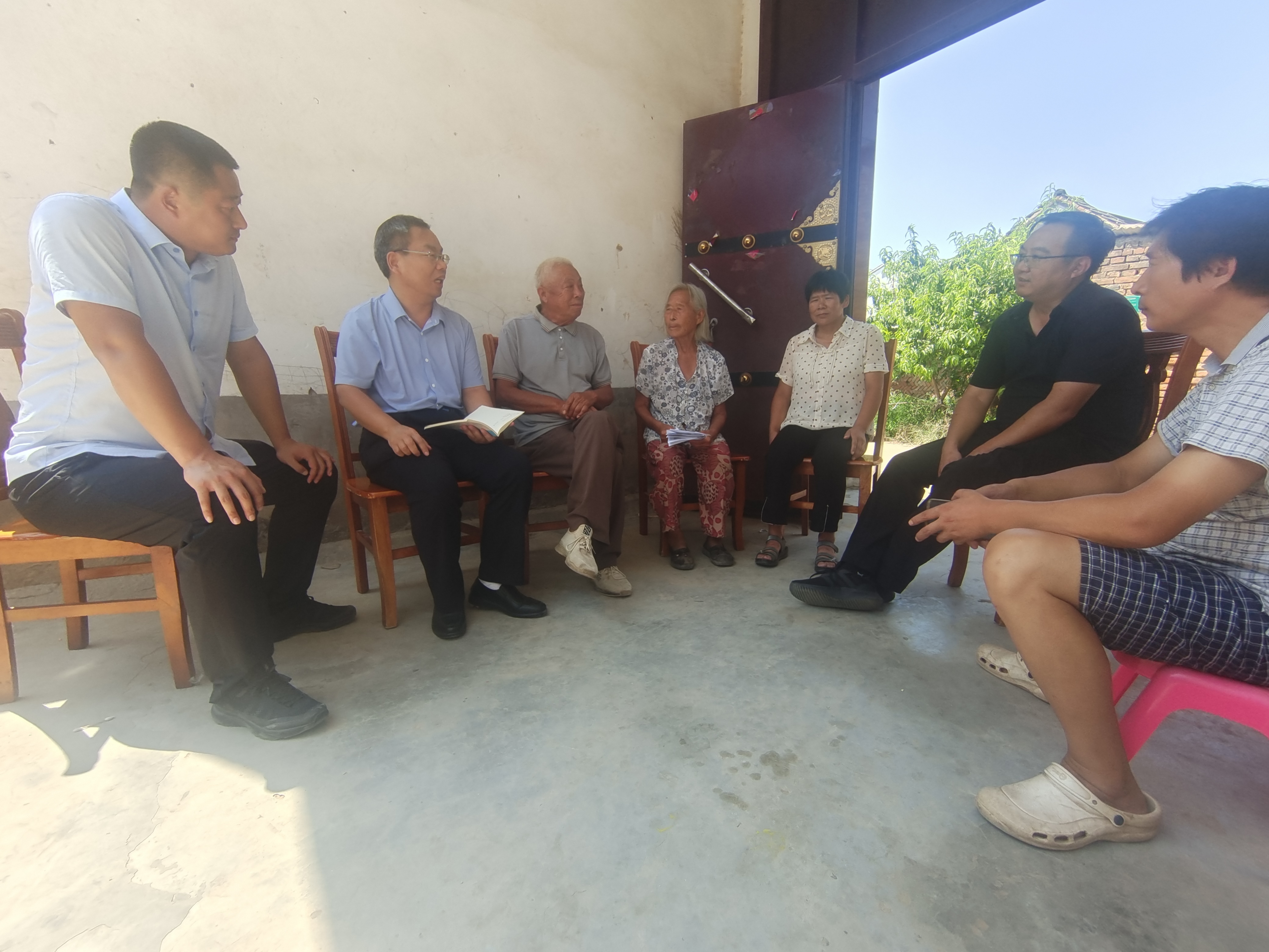 記者在與朱林廣(左三)、邵玉梅(左四)等人嘮嗑交流。