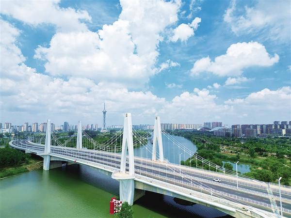 7月25日,藍(lán)天白云映襯下,周口市七一路跨沙潁河大橋以“揚(yáng)帆出海”的獨(dú)特造型,生動展現(xiàn)了這座中原港城的雄心。作為河南“豫貨出?!钡臉蝾^堡,周口正肩負(fù)起港口型國家物流樞紐承載城市的重任,推動“經(jīng)濟(jì)通道”邁向“通道經(jīng)濟(jì)”,實(shí)現(xiàn)高質(zhì)量發(fā)展。