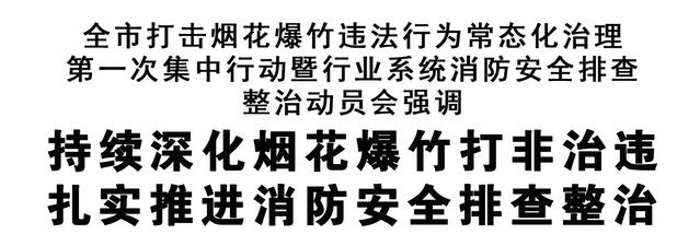 會(huì)議指出,安全重于泰山。各級(jí)各部門要準(zhǔn)確把握我市當(dāng)前煙花爆竹和消防安全的嚴(yán)峻形勢,深刻汲取事故慘痛教訓(xùn),時(shí)刻繃緊思想之弦,緊盯系統(tǒng)性風(fēng)險(xiǎn)和機(jī)制性問題,持續(xù)深化煙花爆竹打非工作,扎實(shí)推進(jìn)消防安全排查整治,最大限度防范遏制各類事故發(fā)生,全力保障人民群眾生命財(cái)產(chǎn)安全和社會(huì)大局穩(wěn)定。