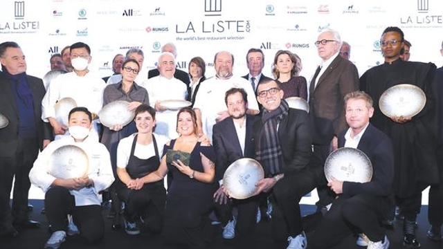 11月29日,在位于巴黎的法國外交部舉行的LA LISTE國際美食榜單揭曉活動現(xiàn)場,獲獎廚師合影留念?!?a href="http://m.gxzyedu.com/content/2021-12/01/content_960943.html" target="_blank" >[詳細]