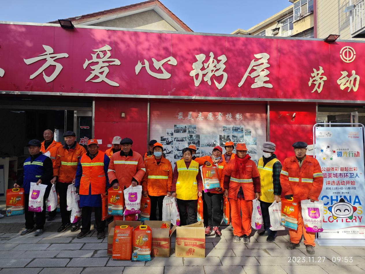 11月27日,周口體彩分中心工作人員攜帶米、面等物資來到“東方愛心粥屋”開展“公益體彩 益起出彩”致敬“城市最美環(huán)衛(wèi)人”活動(dòng)公益活動(dòng),對(duì)20名“城市最美環(huán)衛(wèi)人”開展捐助?!?a href="http://m.gxzyedu.com/content/2023-12/20/content_1038907.html" target="_blank" >[詳細(xì)]