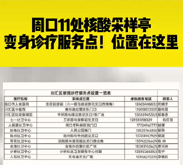 周口11處核酸采樣亭變身診療服務(wù)點(diǎn)!