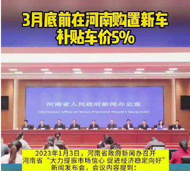3月底前在河南購(gòu)置新車補(bǔ)貼車價(jià)5%