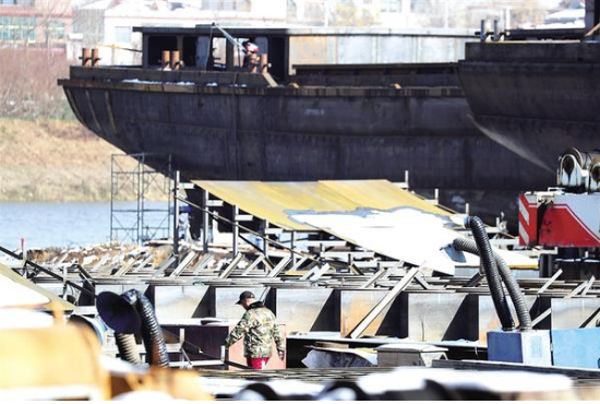 12月14日,周口某造船廠內(nèi),工人們正在緊張作業(yè)。依托沙潁河千噸級航道優(yōu)勢,周口造船業(yè)蓬勃發(fā)展,2000噸級貨船訂單覆蓋蘇、皖、浙等地?!爸芸谠臁必洿瑥纳碀}河啟航,通江達(dá)海,為港城融合發(fā)展注入強勁動力。