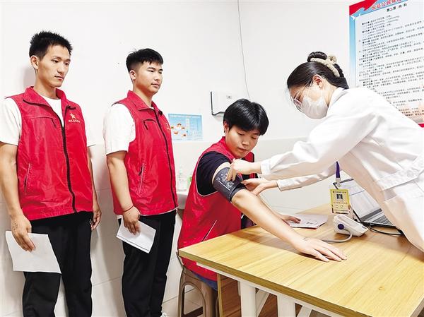 體檢現(xiàn)場,應(yīng)征青年統(tǒng)一穿著紅馬甲,手持體檢指引單、廉潔征兵公開信,排著整齊的隊(duì)伍,逐個(gè)科室參加體檢。醫(yī)生現(xiàn)場檢查、現(xiàn)場告知結(jié)論、現(xiàn)場簽字確認(rèn)、現(xiàn)場錄入體檢結(jié)果,在體檢結(jié)束后發(fā)放體檢結(jié)論告知書。