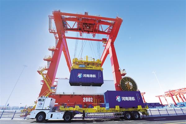 無(wú)人駕駛運(yùn)輸車在進(jìn)行集裝箱裝載調(diào)試。