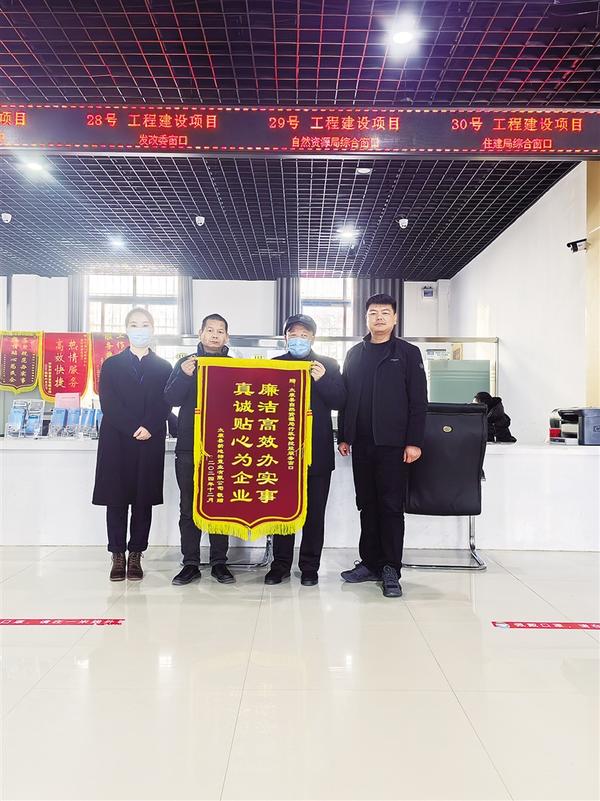 近日,太康縣某置業(yè)公司相關(guān)負責人將一面印有“廉潔高效辦實事 真誠貼心為企業(yè)”字樣的錦旗送到縣自然資源局,感謝工作人員為他們提供優(yōu)質(zhì)、高效、熱情的服務(wù)。
