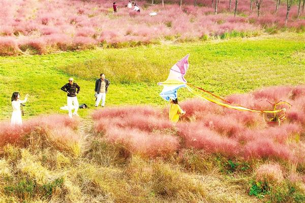 11月4日,市民在粉黛亂子草盛開的中心城區(qū)濱河公園南岸玩耍。