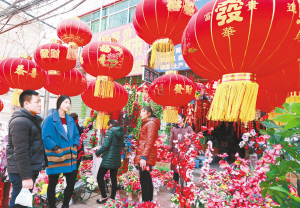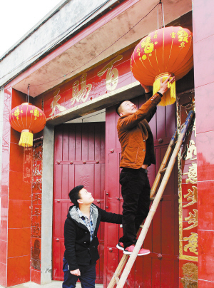 ?、儋N對聯(lián),掛燈籠,喜迎新春。 (記者 王映 攝)