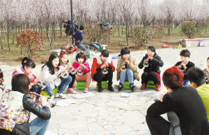 項(xiàng)城市以群眾喜聞樂(lè)見(jiàn)的傳統(tǒng)嗩吶、廣場(chǎng)舞等為載體,大力開(kāi)展群眾性文化體育活動(dòng),使廣大市民精神面貌煥然一新。圖為孩子們?cè)趯W(xué)習(xí)吹奏嗩吶。(張永久 攝)