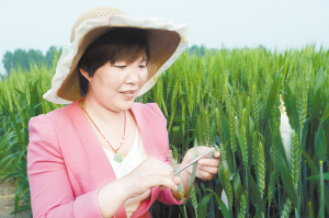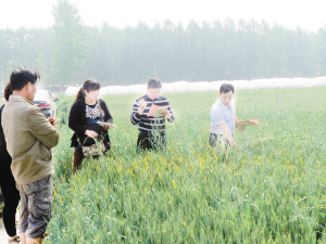 下圖:昨日,項(xiàng)城市農(nóng)科所技術(shù)人員正在進(jìn)行小麥雜交授粉。連日來,該所抓住小麥?zhǔn)诜燮诘那绾锰鞖?,組織技術(shù)人員開展雜交授粉實(shí)驗(yàn),確保小麥單產(chǎn)同步提高。(蔣樹保 攝)