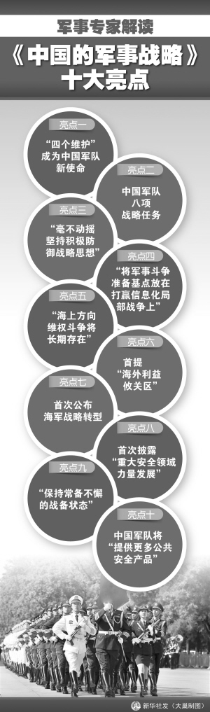 這是自1998年以來中國政府發(fā)表的第九部國防白皮書,也是首部專門闡述中國軍事戰(zhàn)略的白皮書。