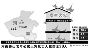 據(jù)新華社鄭州5月26日電 記者從河南省平頂山市政府獲悉,5月25日晚發(fā)生火災(zāi)的魯山縣康樂園老年公寓已有12名相關(guān)責(zé)任人被控制,還有3人正在查找落實。