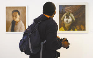 “交錯與融合”美術作品展在南非開幕 6月6日,在南非約翰內(nèi)斯堡舉行的“交錯與融合”美術作品展上,一名參觀者欣賞華人藝術家張銳的油畫作品。當日,作為“南非中國年”活動的一部分,由華人藝術家張銳與南非11名畫家共同參與的“交錯與融合”美術作品展舉行。新華社發(fā)