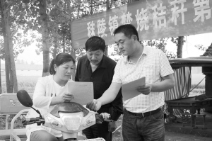 項城市秣陵鎮(zhèn)積極做好夏季秸稈禁燒工作,實行班子成員包片、機(jī)關(guān)干部包村、村組干部包戶責(zé)任制,全力構(gòu)筑了秸稈禁燒“防火墻”。圖為6月8日該鎮(zhèn)干部在李閣村向過往群眾發(fā)放禁燒宣傳單。(張永久 攝)