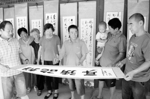 昨日,扶溝縣包屯鎮(zhèn)雁倉(cāng)村村民在觀看郭合的書(shū)法展。據(jù)了解,該村村民郭合癡迷書(shū)法,20多年來(lái),他一邊務(wù)農(nóng)一邊堅(jiān)持練字,把書(shū)法當(dāng)成了生活中最大的樂(lè)趣。