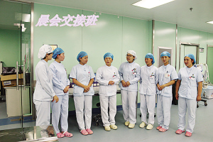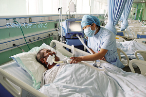 當(dāng)然,護(hù)理工作并非一帆風(fēng)順。眾所周知,ICU收治的都是重癥患者,患者大多數(shù)都有精神障礙,譫妄、昏迷、煩躁不安等狀況很常見(jiàn),這就需要護(hù)士們充滿耐心和愛(ài)心。張衛(wèi)華以實(shí)際行動(dòng)詮釋人間大愛(ài)。2014年8月,科室里來(lái)了一名Ⅱ級(jí)肝性腦病的男性患者,已經(jīng)精神錯(cuò)亂且不認(rèn)人,行為非常危險(xiǎn)。由于該病不能使用鎮(zhèn)靜藥物,當(dāng)責(zé)任護(hù)士靠近患者時(shí),患者拿起床頭柜上的一個(gè)玻璃瓶向護(hù)士砸去。作為護(hù)士長(zhǎng)的張衛(wèi)華見(jiàn)此情景,臨危不懼,用自己的身軀保護(hù)責(zé)任護(hù)士。只聽(tīng)見(jiàn)啪的一聲,鮮血順著她的臉頰流了下來(lái),可她還是慢慢走向那名患者,輕聲向他解釋情況以安撫其情緒?;颊叩那榫w漸漸地穩(wěn)定下來(lái),她才去處理傷口,并輕松地說(shuō):“只要沒(méi)傷著病人就好?!庇幸淮危剖依飦?lái)了一名心梗住院的老人,老人的孩子都在外地,得知老人生病住院也沒(méi)趕回來(lái)照顧,甚至連一句問(wèn)候都沒(méi)有。老人除了要忍受著病痛的折磨,還要忍受對(duì)孩子們的思念。張衛(wèi)華見(jiàn)此情景,非常心疼,為安慰老人,上班期間她都會(huì)去陪老人聊天,哄老人開(kāi)心。老人吵著不舒服的時(shí)候,張衛(wèi)華用藥緩解,同時(shí)耐心安撫老人。晚上老人因?yàn)楹⒆拥氖虑?,?huì)像一個(gè)小孩兒一樣哭泣不止,張衛(wèi)華心疼地陪在老人身邊,一遍又一遍地安慰說(shuō):“別害怕,我在您身邊,我就是您的女兒?!?/P>