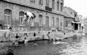 7月14日,一名濟(jì)南市民在濟(jì)南市王府池子跳水游泳。當(dāng)天,濟(jì)南市最高氣溫超過(guò)39攝氏度,為10年以來(lái)同期最高氣溫。
