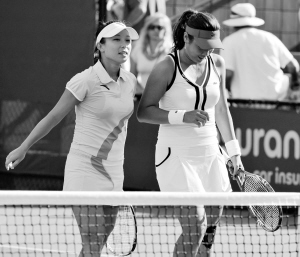 鄭潔和詹詠然今年2月開(kāi)始搭檔打雙打。昨天面對(duì)兩位身高都超過(guò)1.80米的對(duì)手,她倆以穩(wěn)健多變的底線球和積極上網(wǎng)牢牢掌握著場(chǎng)上主動(dòng)權(quán),勝得十分輕松。