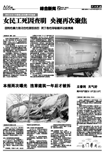 女民工死因查明 央視再次聚焦