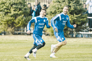 當地時間3月24日,阿根廷隊球員梅西(左)與隊友在訓練中。當日,阿根廷隊在美國華盛頓訓練,備戰(zhàn)28日與南非隊的熱身賽。新華社發(fā)