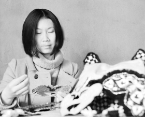 鹿邑的虎頭鞋、虎頭帽也是省級非遺項目,一名游客在現(xiàn)場學(xué)習(xí)制作時,一時不知從哪兒下手。   ▲