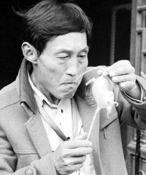 省級非遺項目滑縣馬氏吹糖人第十六代傳承人馬電坤現(xiàn)場表演吹糖人。
